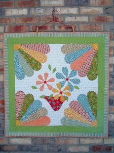 Show your love this Valentine’s Day to your bestie. 39″ X 39″ wallhanging. Intermediate. Pieced and hand appliqued.